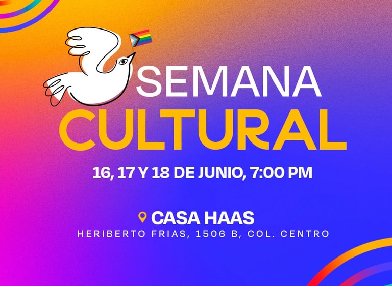 Como parte de las actividades rumbo a Maz Orgullo, en Sinaloa Diverso A.C. organizamos la Semana Cultural del PRIDE, un espacio de reflexión, aprendizaje y encuentro para todes.